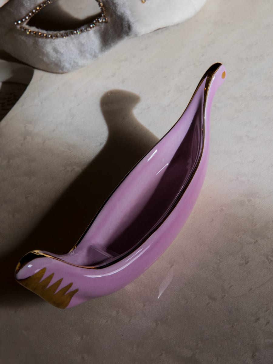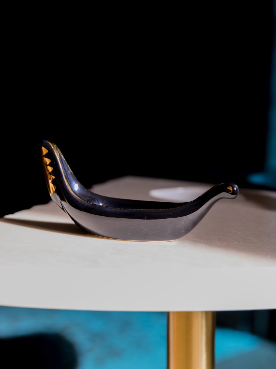 Materiales: Realizado totalmente a mano en cerámica porcelánica blanca acabada con esmaltes de colores y decorado con un metal noble de oro de 24k, platino y cobre.