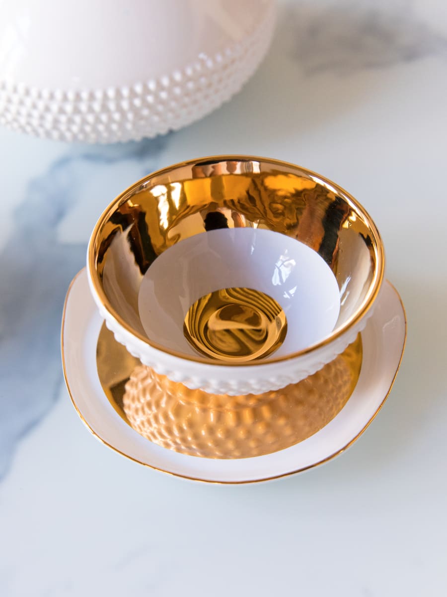 Tetera “Rilievo” Blanco / Oro (Medio litro)
