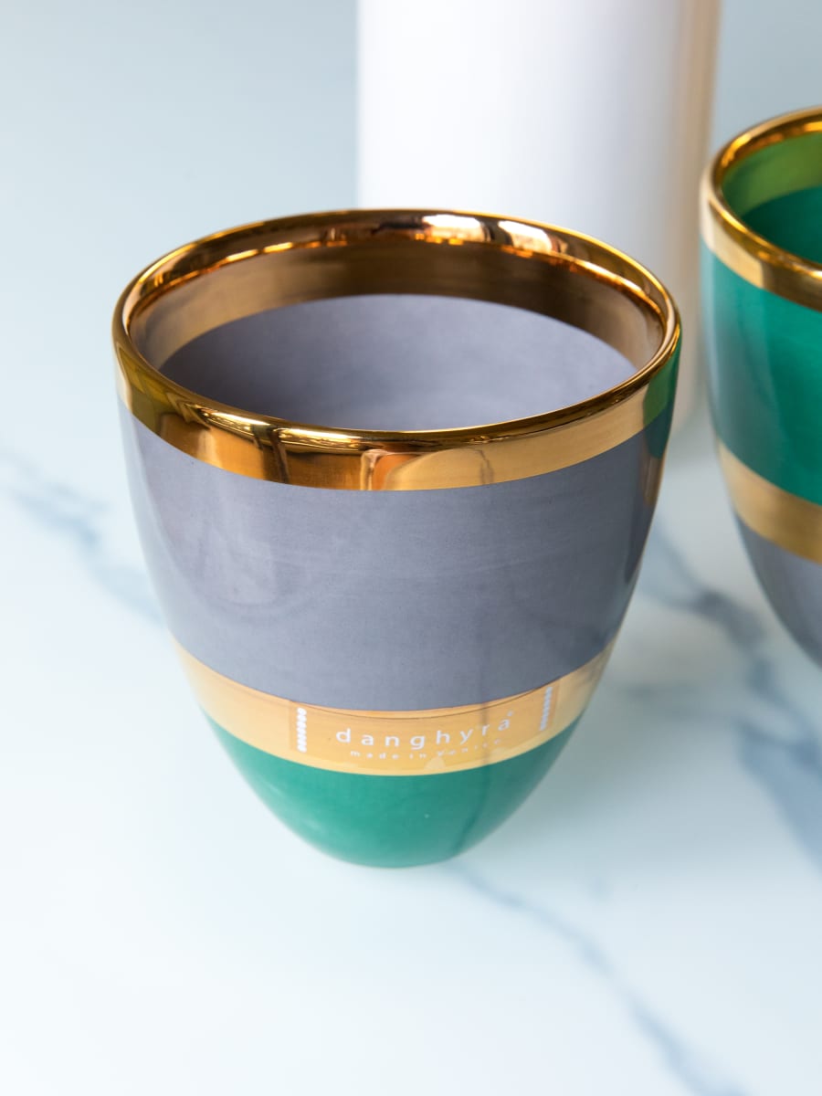 Vaso elaborado en arcilla blanca. Decorado con esmalte bicolor y oro 24K.